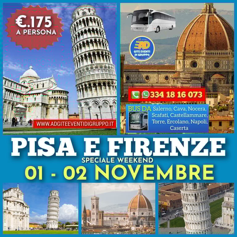 ✅️Partenza dai luoghi prestabiliti sosta durante il viaggio per prima colazione, arrivo in tarda mattinata a 'PISA' a visitare la sua torre Pendente a piazza dei miracoli con pranzo libero, in serata Spostamento a 'MONTECATINI TERME' Sistemazione delle camere riservate con cena e pernottamento.